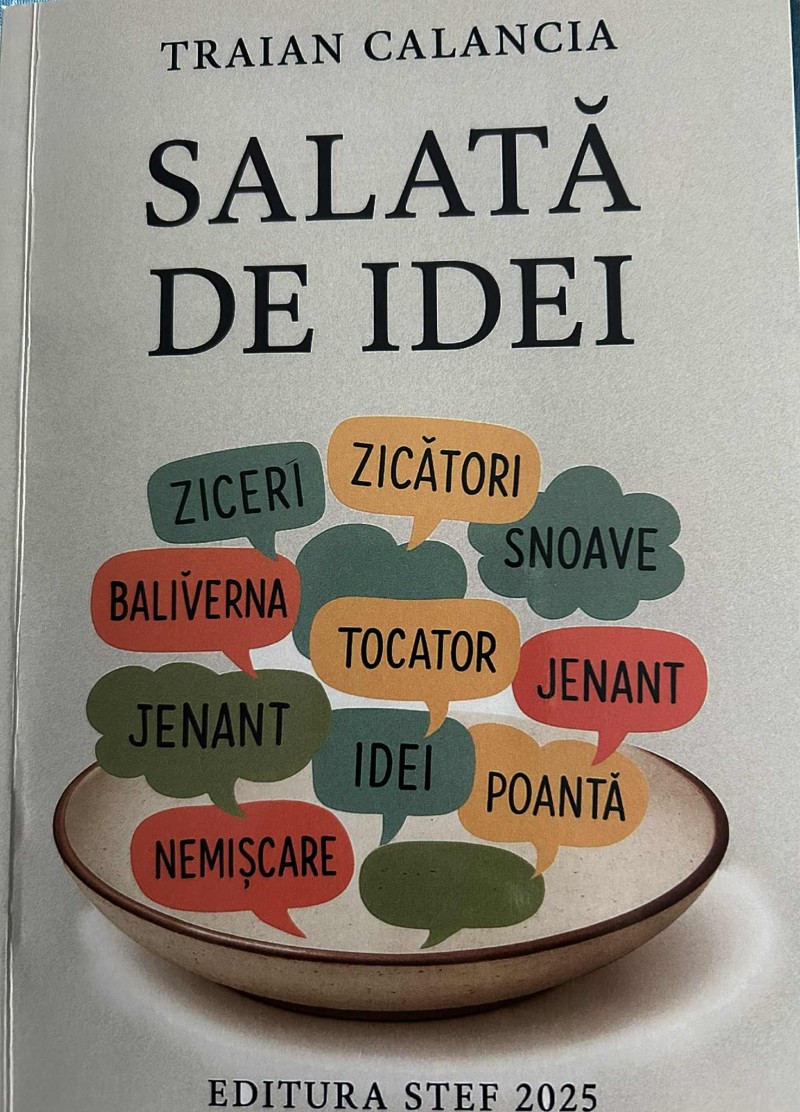 Născut la 12 noiembrie 1950 la Hănești, Traian Calancia (Calancea) este un scriitor autentic. Profesor de matematică la bază, după câțiva ani de predat această disciplină pretențioasă, s-a dedicat contabilității. În timpul liber și condus de sloganul „Când știi că poți, îți poți permite să vrei”, s-a apucat de scris pentru a pune în valoare simțul umorului care, de preaplin, dă pe afară. Am scris despre câteva volume ale sale, cum ar fi „În grădina lui Dumnezeu” (2001 sau „Atentat la normalitate” (2001) în care autorul vine să demonstreze că în această lume nebună, plină de boacăne, doar ideea contează. Fiecare schiță e un fel de pastilă concentrată care, prin doza de umor pe care o are, după consumare, provoacă o relaxare, câte un zâmbet și nu rareori o respirație rece ca gheața ca rezultat al finalului abrupt, surprinzător. Am recenzat și cartea „Un bazar bizar” (2022) în care cititorul găsește un amalgam de indivizi deosebiţi prin „apucături” și care constituie personajele acestui volum pe care autorul a reuşit să le armonizeze într-o serie de texte în care, dintr-o perspectivă psihologică, întâlnim un umor conectiv, autorul fiind conştient că actul comunicării este inclus în ceea ce numim condiţie umană. Am citit și am scris despre „Viața ca o poezie” (2022), un volum construit în „ochiul minții”, o carte ca un fel de descărcare de timp, ca un fel de descărcare de gestiune a vieții. Credeam că autorul se va opri aici. Zilele trecute am primit volumul „Salată de idei” (Editura „Stef”, Iași, 2025). Într-un „cuvânt înainte”, autorul ține să lămurească eventualul cititor despre ce-l așteaptă: „Scrierile mele sunt scurte, relaxante, atractive, nu plictisesc, nu incită la controverse și toate într-o notă de umor sănătos. Este lectura de seară sau de week-end, de excursie sau de relaș”. De ce „salată de idei”? Vom rămâne tot la explicația pe care ne-o dă autorul: „Pentru că volumul cuprinde de la ziceri și zicători, la aforisme, snoave, scheciuri și sușanele”. Textele, auzite întâmplător, povestiri ale altora sau creații ale autorului, nu sunt organizate pe categorii. Puse în ordinea în care au fost receptate, ele alcătuiesc o „salată delicioasă” de umor, perfectă pentru vitaminizarea acestuia. Într-o primă fază a lecturii, cititorul poate observa că autorul a descoperit că umorul nu poate exista fără triunghiul relațional psihologie – literatură – om, un triunghi pe care l-am descoperit într-o teorie a a doctorului în psihologie Lucian Cochinescu: 1. „psihologia fără literatură este săracă”, 2. „literatură fără psihologie este un nonsens”; 3. „amândouă au un izvor comun: omul”. Personajele lui Traian Calancia sunt de toate categoriile astfel că orice cititor se poate identifica cu ele, se poate deosebi de ele sau le poate respinge. Sunt peste 400 de pagini cu mult mai multe personaje pe care le putem admira, condamna sau râde de ele, pentru că autorul are știința de a produce o furtună în creierul nostru și de găsi echilibrul între antiteze. Traian Calancia și-a ales personajele din toate clasele (de sus, de mijloc, de jos). Deși n-ar părea, eu îl percep pe autor ca fiind un mare sentimental. Volumul acesta, ca și o parte din celelalte, ne relevă o permanentă stare meditativă pe care și-o folosește cu talent în opera sa. Dacă te întâlnești cu Traian Calancia vei observa că intră greu într-un dialog, iar dacă intră vei fi de acord cu Gaston Berger care spunea că sentimentalii „trăiesc din rumegarea trecutului”. Citind lista cu cărțile scrise, vei fi de acord că sunt niște ambițioși care nu părăsesc niciodată stadiul ambiției. Ca scriitor, Traian Calancia este un lup singuratic. Merge pe pietonalul din orașul său și înregistrează orice secvență pretabilă la umor pentru că, nu-i așa, România e un pământ tragic unde totul sfârșește în comic, dacă e să-l cităm pe Paul Morand. Fiecare personaj iese în lume afișându-se cu destinul său care este citit cu exactitate de ochiul minții autorului. Și mai e un lucru important, volumul acesta vrea să ne spună că acolo unde este prezentă femeia, viața e normală. Mai e de observat că există în volum o mulțime de maxime explicite ca și altele implicite, țesute cu talent într-o armonie perfectă cu ingredientele salatei sale.
